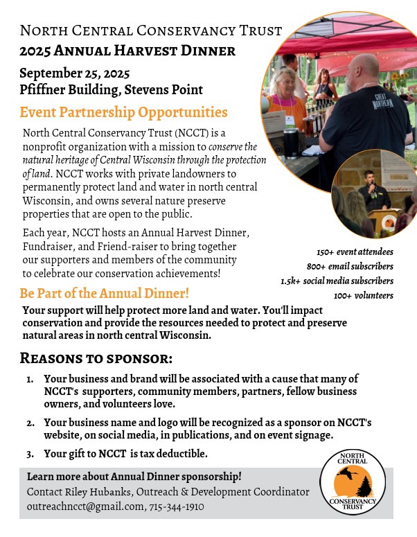 We have special business and corporate sponsorship opportunities available! If you own or work for a business that may be interested in sponsoring the 2025 Annual Harvest Dinner, please contact NCCT at 715-344-1910 or outreachncct@gmail.com to discuss your donation. More information about the benefits associated with sponsorship is available on the left or by clicking the button below.