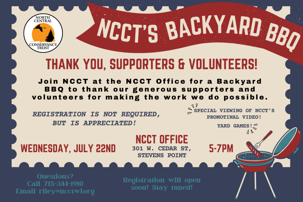 Join NCCT as we celebrate another year of successful conservation in Central Wisconsin at our Annual Harvest Dinner Fundraiser & Friend-raiser! Thursday, September 24th from 4:30-8:00 PM at the Pfiffner Building, in Pfiffner Park!